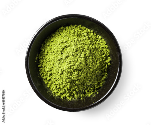 Matcha green tea on white background.
