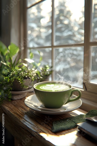 Matcha latte under soft light