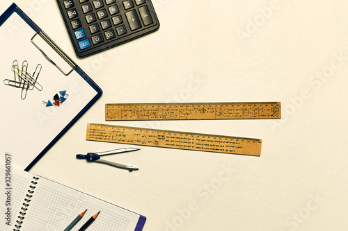 Math education equipment tools. Formula equation symbol printed on rulers. Study concept. Back to school