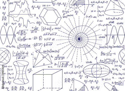 Mathematical vector seamless pattern with plots, figures and formulas. Endless mathematical texture
