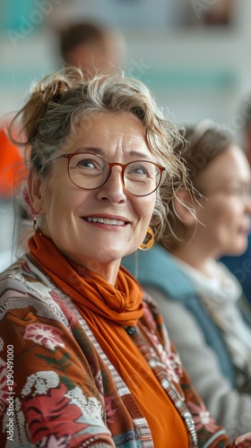 Mature Woman with Glasses Smiling Autumn Fashion Casual Portrait