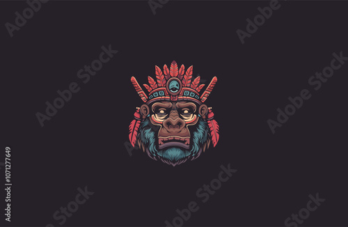 Mayan gorilla totem logo design vector