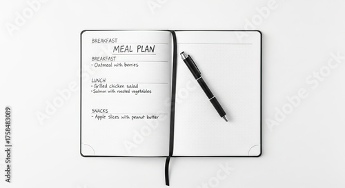 Meal planning notebook healthy eating diet plan food journal recipe book weekly menu organizer pen on table