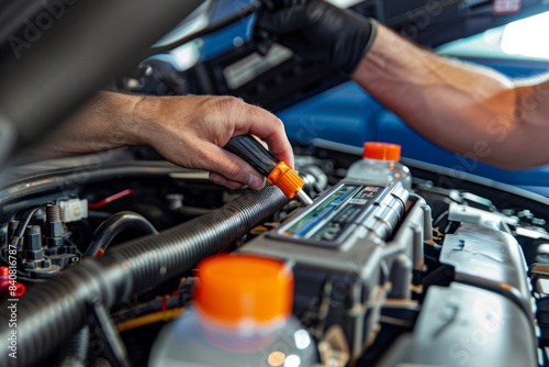 Mechanic Checking Coolant Level for Car Maintenance and Optimal Engine Performance