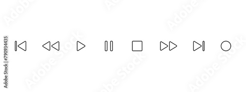 Media player button icons set. Pause, rewind, back, forward icon. Ui elements. Music Video player control buttons. Vector illustration.