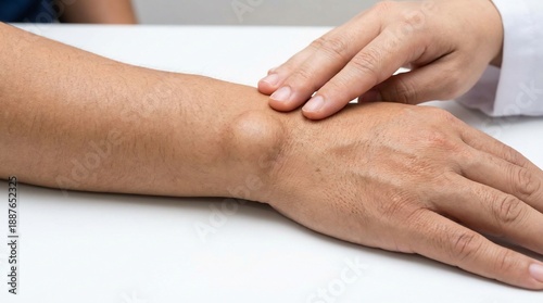 Medical Doctor Examining Ganglion Cyst on Patient Wrist