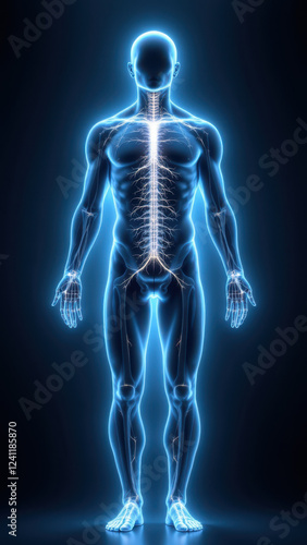 Medical illustration showing a human figure with highlighted internal structures including the vns (vagus nerve stimulation system).