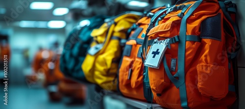 Medical paramedic bag. Disaster accident emergency worker. Generative AI technology.
