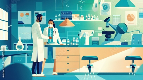 Medical Professionals Collaborating in a Modern Laboratory Setting