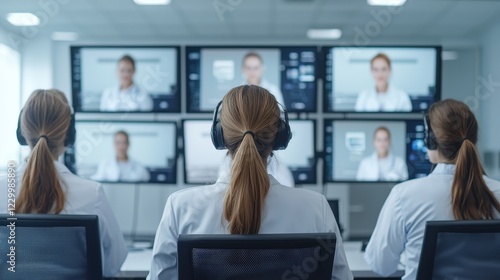 Medical Professionals Monitoring Multiple Screens in Modern Control Room
