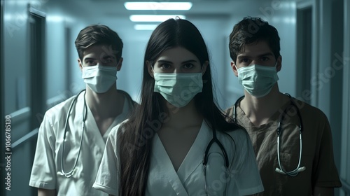 Medical staff wearing masks in a hospital setting, symbolizing dedication and protection in the face of health challenges