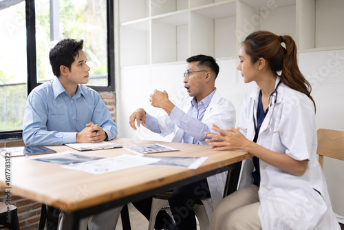 Medical team having a meeting in conference room at hospital, Medical technology and health care concept.