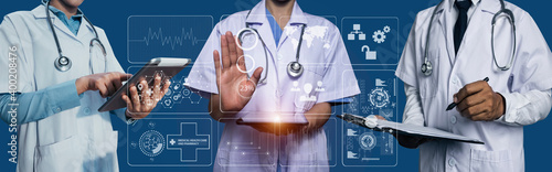 Medical technology and futuristic concept. Doctor hologram modern virtual screen interface.