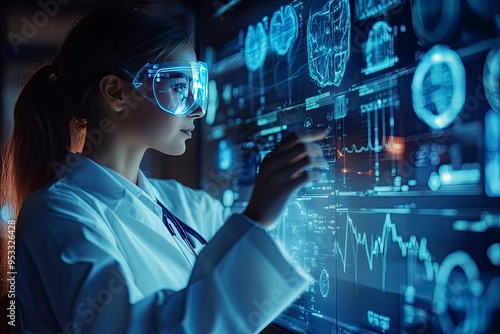 Medical worker touch virtual medical revolution and advance of technology Artificial Intelligence,AI Deep Learning for medical research,Transformation of innovation and technology for future , ai