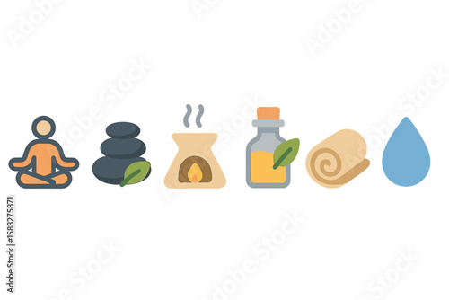 Meditation and wellness symbols representing relaxation and holistic practices in a serene setting