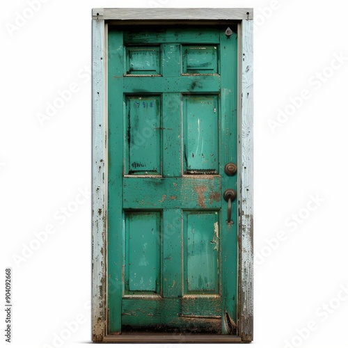 Medium shot of old Door, isolated on a white background, bright and vivid tonality