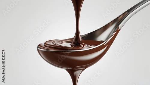 Melted chocolate flowing into a spoon, set against a background, with a clipping path included.