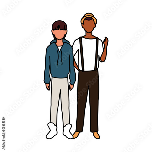 men standing faceless with different poses on white background