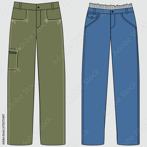 Men's Front and Back Chinese Casual Pants Plant Flat Liner Fashion Drawing, Slim Fit Pants Vector Illustration