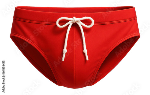 Men's swim briefs in bright red with white drawstring ties
