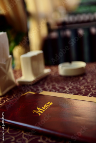 Menu book on table in restaurant