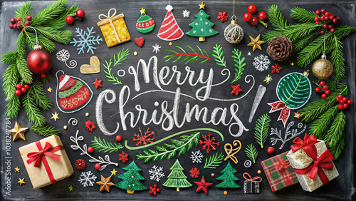 Merry Christmas decorations with festive elements and vibrant colors