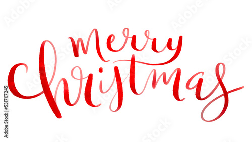 MERRY CHRISTMAS red brush lettering wth watercolor effect on transparent background