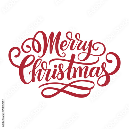 Merry Christmas text. Xmas calligraphic inscription. Christmas handwritten lettering. Xmas text isolated on white for postcard, poster, banner design