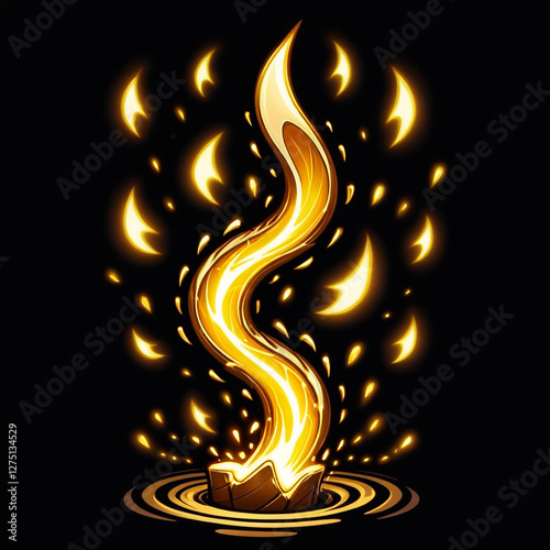 Mesmerizing golden liquid flame gracefully flows into a small container, creating an enchanting spectacle against a black background.