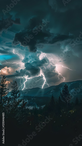 Mesmerizing Night Thunderstorm with Striking Lightning Over Silhouetted Landscape