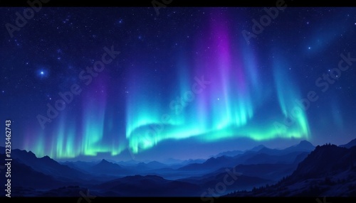 Mesmerizing northern lights over mountainous landscape under starry night sky