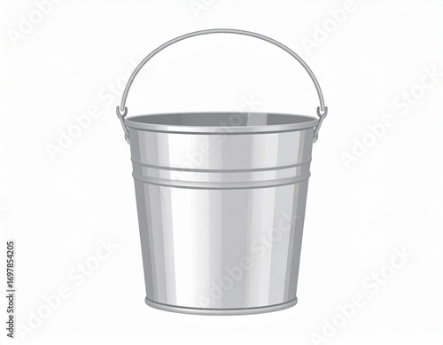 Metal bucket. Vector. Pail icon. Flat design. Steel garden tin, isolated on white background