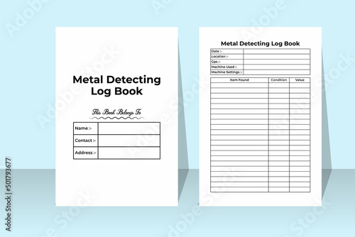 Metal detecting KDP interior notebook. Antique item digging information and location tracker template. KDP interior journal. Metal detecting work activity and experience tracker interior.