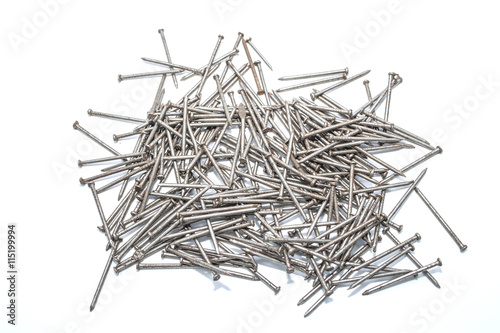 Metal nails on white background