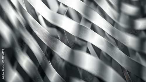Metal ribbons intertwine, creating a sense of flow and movement, playing with light and shadow.