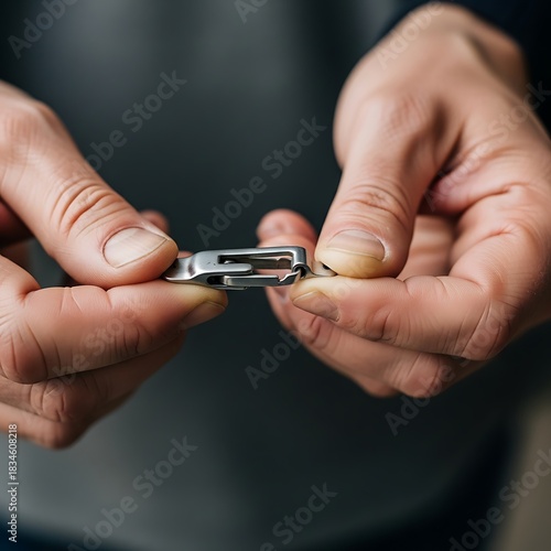 Metallic Buckle Held by Hands Depicts Precision and Functionality Concept