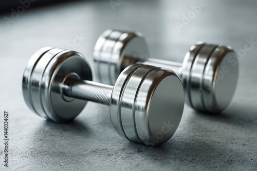 Metallic Dumbbells on Floor