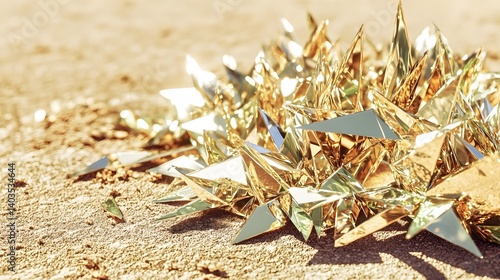 Metallic Facets Jutting from Desert Floor with Shimmering Reflections