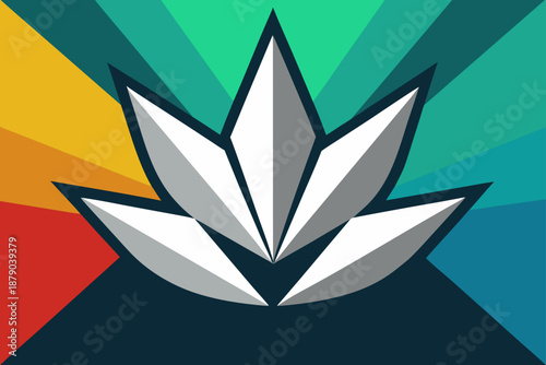 Metallic Foil Leaves Over Colorful Polygon Burst Pattern