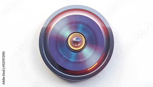 Metallic Shiny Disc with Blue Iridescence on White Surface