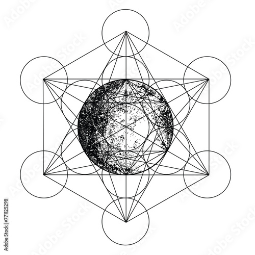 Metatron Cube. Moon pagan Wicca moon goddess symbol. Three-faced Goddess, Maiden, Mother, Crone isolated vector illustration. Tattoo, astrology, alchemy, boho and magic symbol. Coloring book..