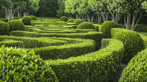 meticulously manicured white privet hedge stretches towards vanishing point crisp lines and lush