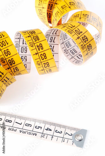 metro per sarti arrotolato su sfondo bianco