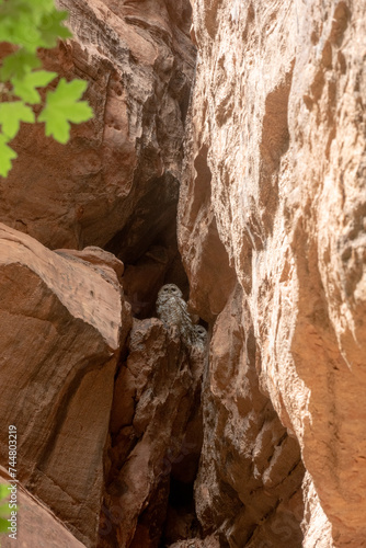 Mexican Spotted Owl Looks Down From Cave In The Rocks