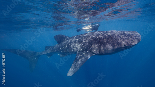 Mexico,ÊIslaÊMujeres, Woman swimming with whale sharkÊ