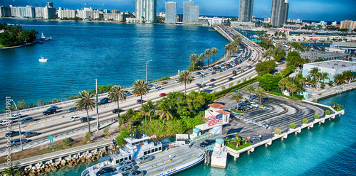 Miami, Florida. Wonderful coastal colors with skyscrapers and ocean