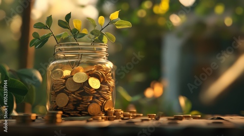 Micro savings: A depiction of small, regular deposits being made into a savings jar or digital account, representing the concept of saving tiny amounts that accumulate over time,