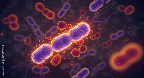 Microbial Binary Fission: Glowing Rod-Shaped Bacteria Dividing in Dense Colony