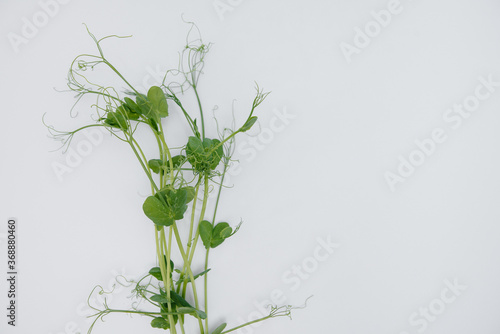 Micro-green sprouts close-up on a white background with free space. Healthy food and lifestyle