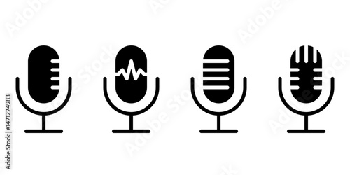 Microphone Icon Set. Different Microphone Collection. Symbol Of Podcast Isolated on white background. Vector Illustration.